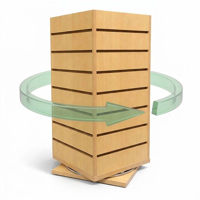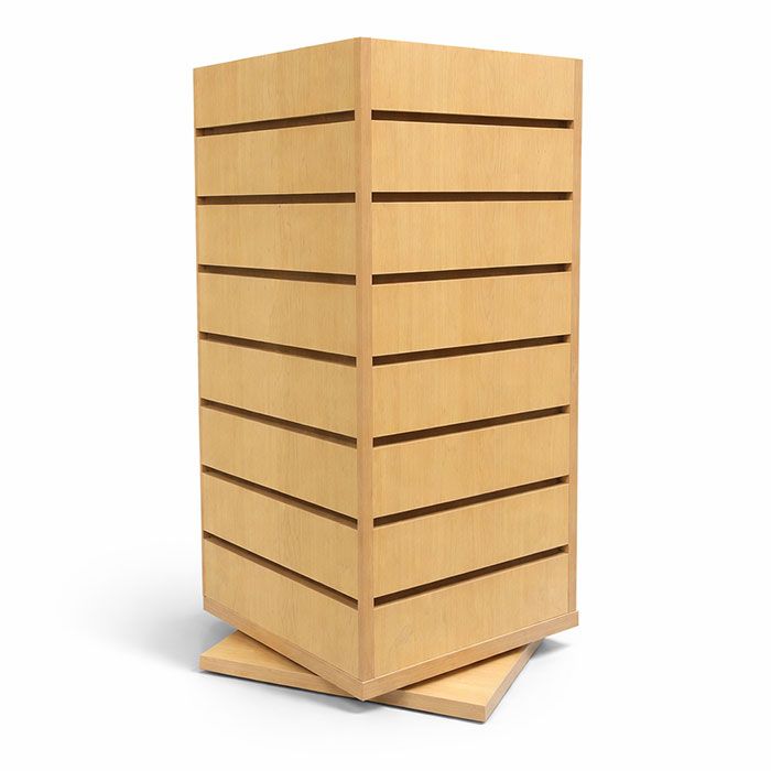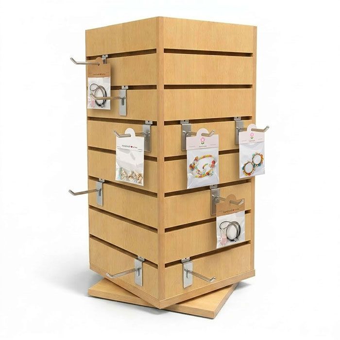 Mini Tower Slatwall Counter Display, Rotating Turn your checkout counter into a high-profit sales zone. The JD0825 Rotating Slatwall Merchandiser is a compact, 360-degree powerhouse designed to drive impulse purchases. Perfect for boutiques and gift shops, this spinning tower puts jewelry and accessories at eye level, instantly increasing your average transaction value.Why It Works for Your Store: 360° Rotating Base: Engage customers from every angle with a smooth, fluid spin that makes browsing effortless. 4-Sided Merchandising: Quadruple your display capacity without losing precious counter space—ideal for small retail footprints. Professional Maple Finish: The durable, upscale laminate provides a warm backdrop that makes your products pop. 28 Precision Slat Grooves: Fully compatible with standard slatwall hooks for total layout flexibility. Compact & Sturdy: The 12" x 12" footprint fits seamlessly onto any cash wrap or display table.Shipping & Logistics Fast Delivery: Ships in 5-7 business days. Instant Quote: Add to cart for a real-time shipping estimate. Pro Tip: Use 4" hooks or smaller for maximum stability and a clean, boutique look.