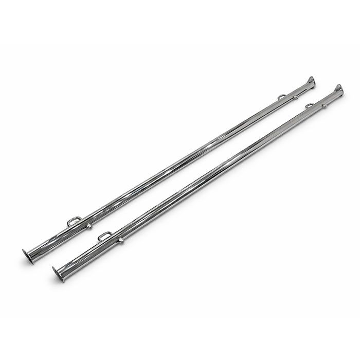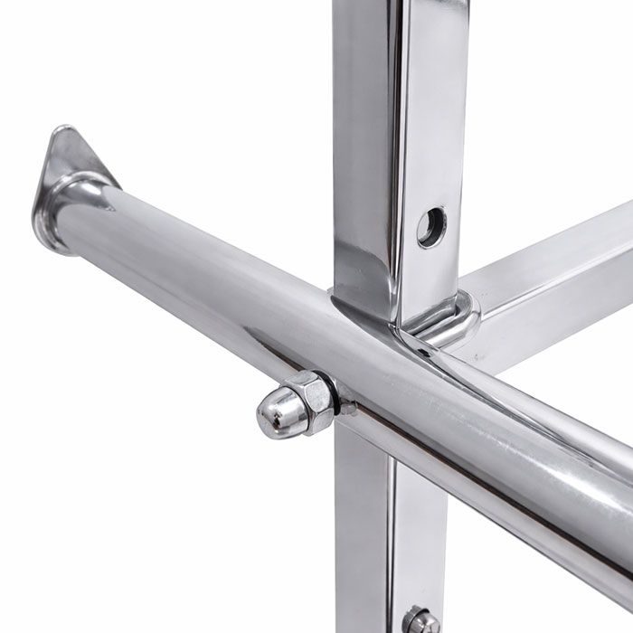 Clamp-On Hangrails for Double Bar H Racks Double Your Display, Not Your Footprint... Maximize every inch of your retail floor with our Clamp-On Side Hangrails. Designed for high-volume environments, these heavy-duty rails instantly transform your standard H-Racks into high-capacity, dual-tier display powerhouses. Whether you’re organizing shirts and skirts or building a continuous "power run" across multiple racks (can be used in conjunction with the 60" connecting rails HR60), these rails provide the professional, sag-free support your inventory deserves.Why Retailers Love It Instant Capacity Boost: Create a second tier of hanging space to display twice the merchandise without taking up more floor space. Pro-Grade Durability: Built from 1 1/4" round tubing with a sleek chrome finish that blends seamlessly with your existing HR025 and HR296 racks. Tool-Free Assembly: Features a lightweight design with easy-to-use clamps that attach directly to the frame in seconds. Customizable Layouts: Use them as standalone additions or pair them with connecting rails HR60 to create a seamless, continuous hanging garment run.Product Details Dimensions: 60" (5 Feet) Long Construction: 1 1/4" Diameter round tubing Finish: High-shine Polished Chrome Compatibility: Fits HR025 and HR296 What's Included: Set of 2 hangrails, mounting brackets, and all necessary hardwareShipping & Ordering Delivery Time: Please allow 5-7 business days for delivery. Shipping Rates: Add item to shopping cart for a shipping quote.
