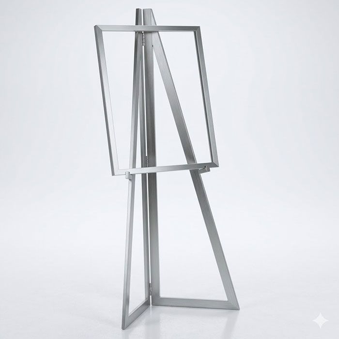 Crafted with a clean satin chrome finish, this modern display easel adds a refined, upscale touch while remaining highly functional. Its sturdy metal construction ensures long-lasting durability—perfect for busy retail stores, showrooms, and office lobbies that need dependable, stylish signage solutions.