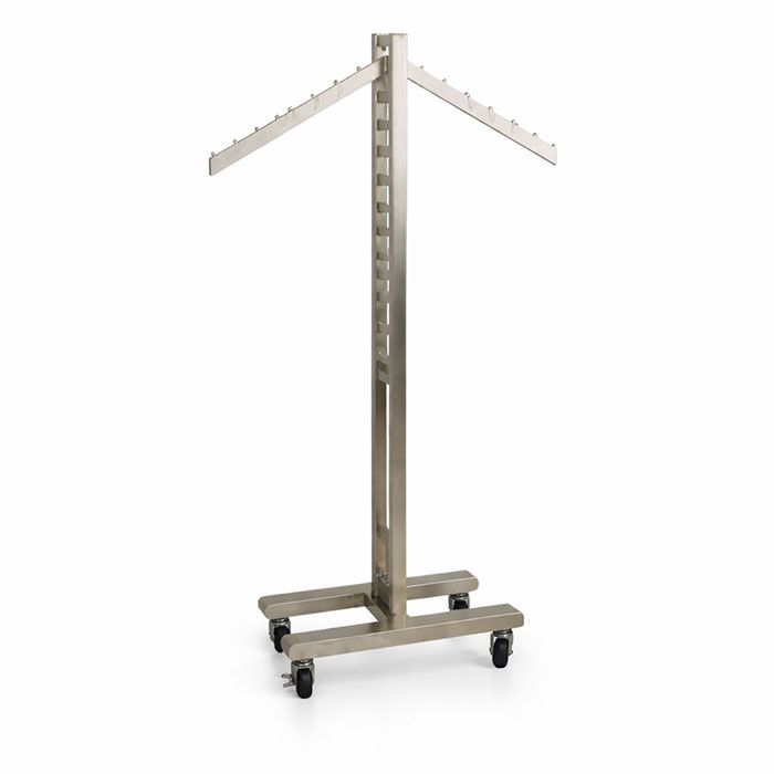 Single Ladder Display Rack with Heavy-Duty CastersCreate a clean, modern merchandising moment anywhere in your store—without committing to a permanent fixture. The LA01 Single Ladder Display Rack is a sleek, freestanding display solution that rolls effortlessly into place, helping you refresh product stories quickly while keeping your floor plan flexible and profitable.Designed for active retail environments, this single ladder display rack pairs a durable satin nickel finish with a sturdy base and smooth-rolling casters. The result is a professional, upscale presentation that moves as fast as your merchandising needs—ideal for boutiques, showrooms, and specialty retail spaces.Why This Ladder Display Rack Works for Your StoreEasy mobility for fast floor changes: Heavy-duty casters allow you to reposition the display effortlessly for promotions, seasonal resets, or visual refreshes. Secure placement when it matters: Two locking casters keep the rack firmly in place once positioned, ensuring a safe and stable display. Modern satin nickel finish: A streamlined, contemporary look that enhances your store’s aesthetic and elevates product presentation. Freestanding flexibility: No wall mounting required—use it anywhere on the sales floor or integrate it into larger merchandising zones. Modular system compatibility: Designed to work seamlessly with the Ladder System, allowing you to customize the display as your assortment evolves.Part of the Versatile Ladder System This display rack is part of our adaptable Ladder System range, built to grow with your merchandising strategy. Add accessories like hooks, hangrails, or shelves to create a tailored solution for apparel, accessories, or featured collections.Helpful tip: To complete your setup, visit our Ladder System garment racks page to purchase compatible accessories sold separately.What’s IncludedIncluded: Price reflects the Single Ladder Display Rack shown in the first image only. Not included: Hangrails and shelves shown in additional images are sold separately and are not included with this unit.SpecificationsItem Number: LA01 Overall Dimensions: 62" H x 12" W x 24" D Finish: Satin Nickel Configuration: Free Standing Mobility: 4 heavy-duty casters (2 locking) Accessories: Sold separatelyShipping InformationShipping quote: Add this item to your shopping cart to receive a shipping quote. Delivery time frame: Please allow 5–7 business days for delivery.