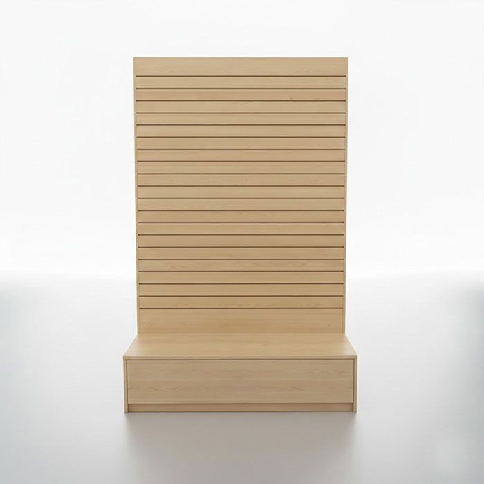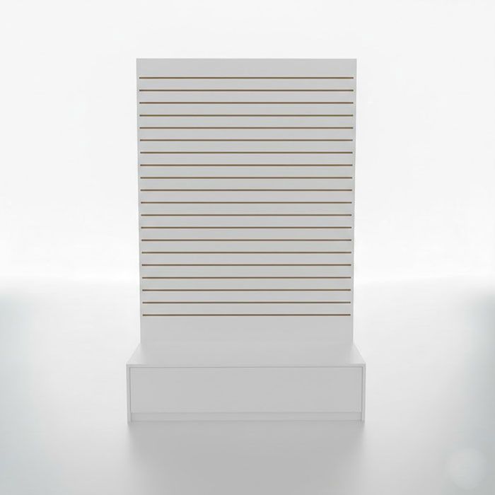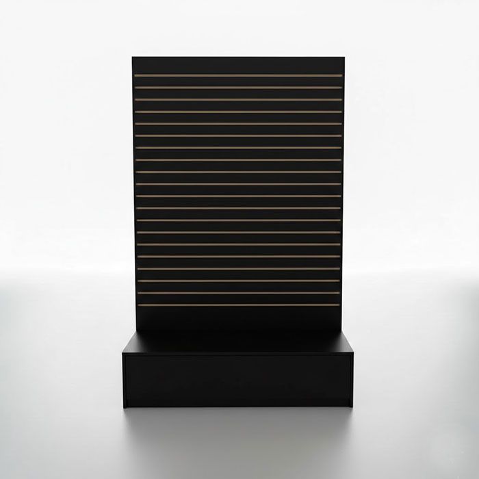 High-Impact L-Shaped Slatwall Merchandiser – 80"H Vertical DisplayTransform underutilized floor space into a high-conversion zone with our L-Shaped Slatwall Merchandiser. Designed for maximum visibility and versatility, this retail display unit allows you to showcase a diverse range of inventory in a compact footprint. Whether used as a standalone focal point or integrated with other slatwall fixtures, this tower creates a professional, organized shopping experience that drives impulse buys.Why Choose the L-Shaped Slatwall Tower?Maximize Vertical Square Footage: Standing 80" tall, this unit puts more products at eye level, significantly increasing your "selling zone" without taking up extra floor space. Complete Display Flexibility: The standard slatwall grooves are compatible with a full range of slatwall accessories, allowing you to swap hooks, shelves, and bins in seconds. Commercial-Grade Durability: Finished in a heavy-duty, easy-to-clean laminate, this unit is built to withstand high-traffic retail environments. Stable, High-Capacity Base: The 20" deep reinforced base provides a rock-solid foundation for heavier merchandise while keeping products elevated and accessible.SpecificationsDimensions: 48"L x 20"D x 80"H (6"H Base) Finish Options: Available in Professional Black, Clean White, or Natural Maple to match your brand aesthetic. Compatibility: Works seamlessly with all standard retail slatwall hardware.Shipping & DeliveryDelivery: Ships via freight; please allow 5-10 business days for arrival. Shipping Quote: Add this item to your cart for an instant freight estimate. Handling: This is an oversized shipment. If you do not have a loading dock, please request a lift-gate at checkout for a seamless delivery. We are happy to coordinate with your preferred freight carrier (Pickup Zip: 11354).